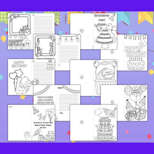 Bursdagskort til fargelegging | Utskrivbare kort for barn og voksne