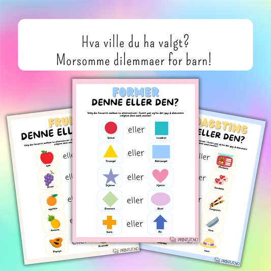 Denne eller den? – gøye dilemmaer for barn – GRATIS | 10-siders aktivitetshefte