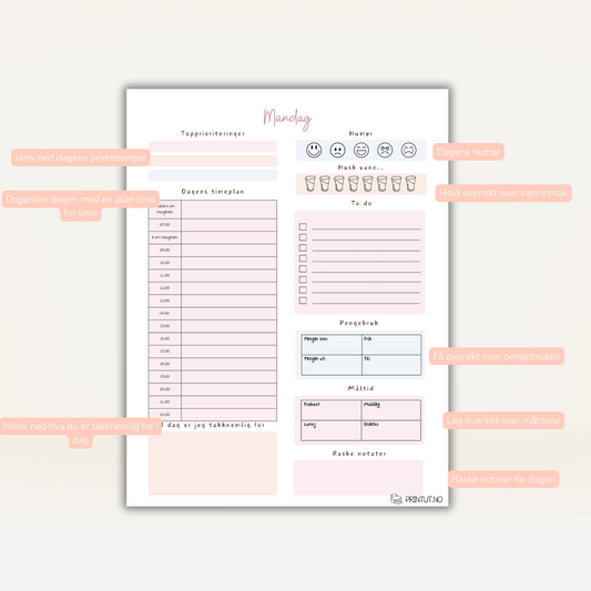 Alle planleggere kan printes ut og brukes igjen og igjen, slik at du alltid har en strukturert oversikt tilgjengelig. Finn den som passer best for deg og gjør planleggingen enklere!