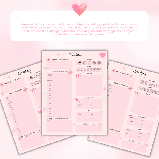 Ukesplanlegger i rosa | Utskrivbar 7-dagers planlegger for effektiv organisering