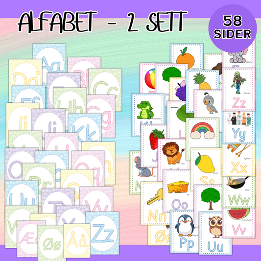 Alfabetplakater – 2 fargerike sett (58 sider)