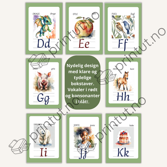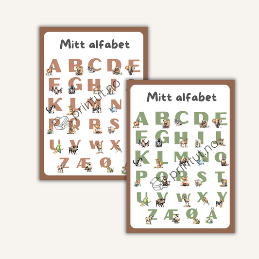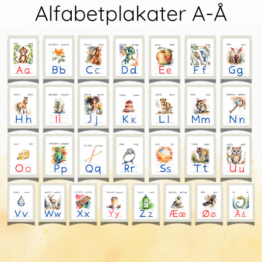 Alfabetplakater | Dekorative bokstavplakater fra A til Å for barnerom og klasserom