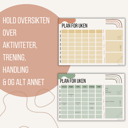 Printbar Ukeplanlegger for Familien | Organiser uken med oversiktlig plakat