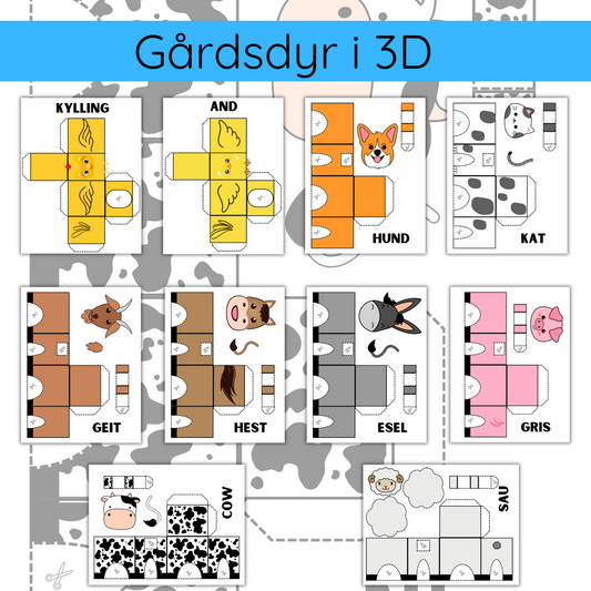 3D Bondegård | Printbare Klipp-og-Lim Dyrefigurer for Barn