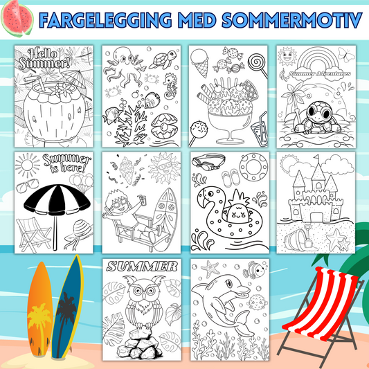 Fargelegging Sommertema | 10 Printbare Tegninger for Barn