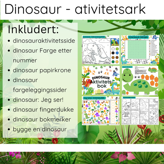 Aktivitetsbok med dinosaurtema | 8 morsomme og lærerike oppgaver for barn