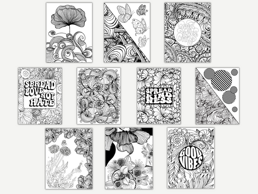 Fargeleggingshefte med blomster og abstrakte motiver – 10 utskrivbare sider for kreativ avslapning